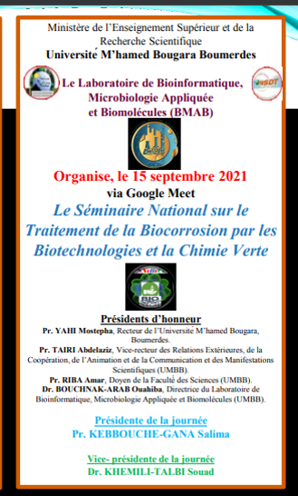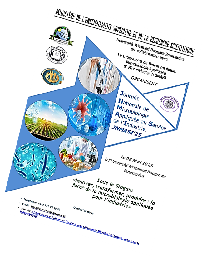 KebboucHe-Gana, S., Angar, Y., Khemili-Talbi, S., Lenchi-Izouine, N., Akmoussi-Toumi, S., Derguine-Mecheri, L., & Lecheb, S. (2025). National Day of Applied Microbiology in the Service of Industry (JNMASI’25). Première édition. TASQ Publishing. ISBN: 978-9969-632-22-4.